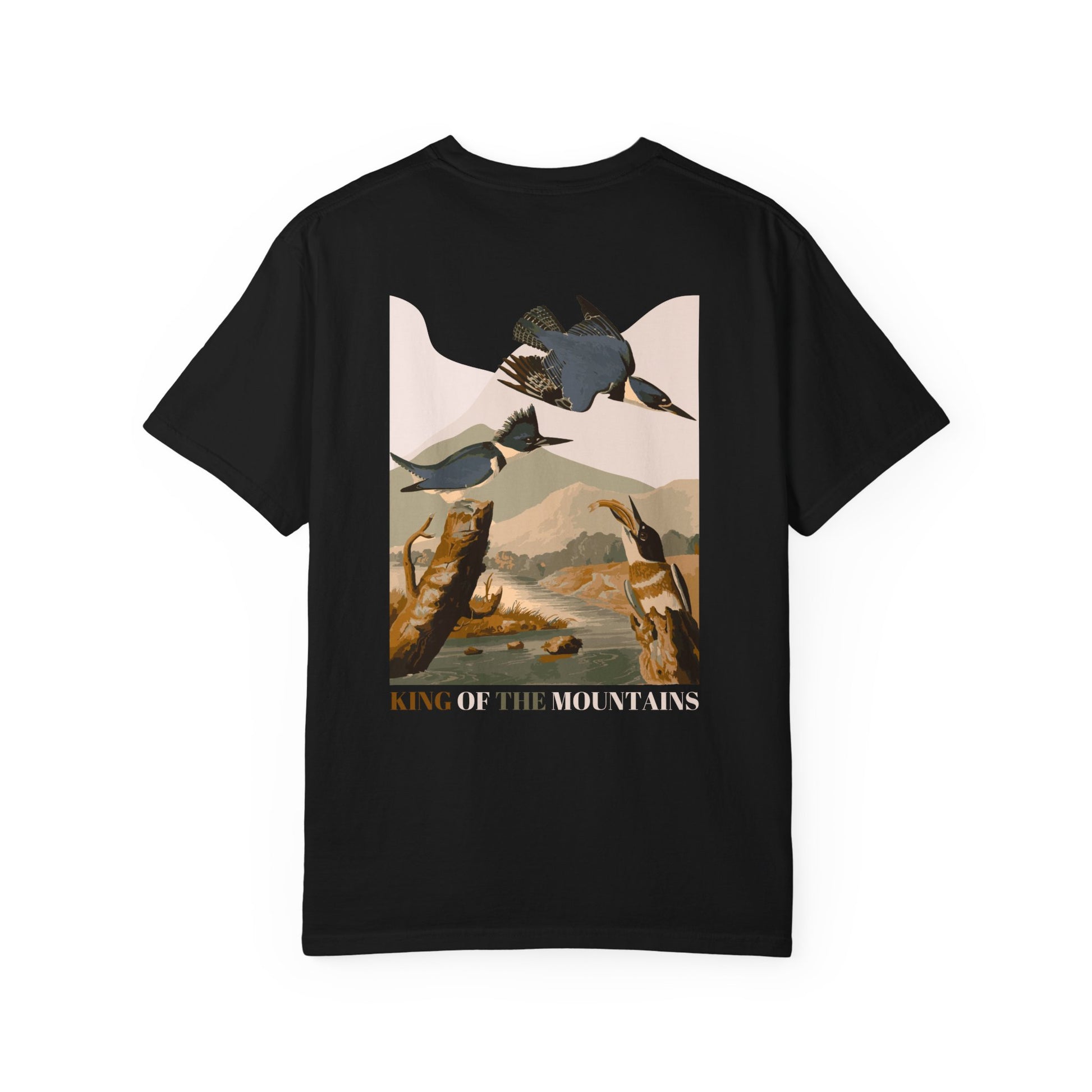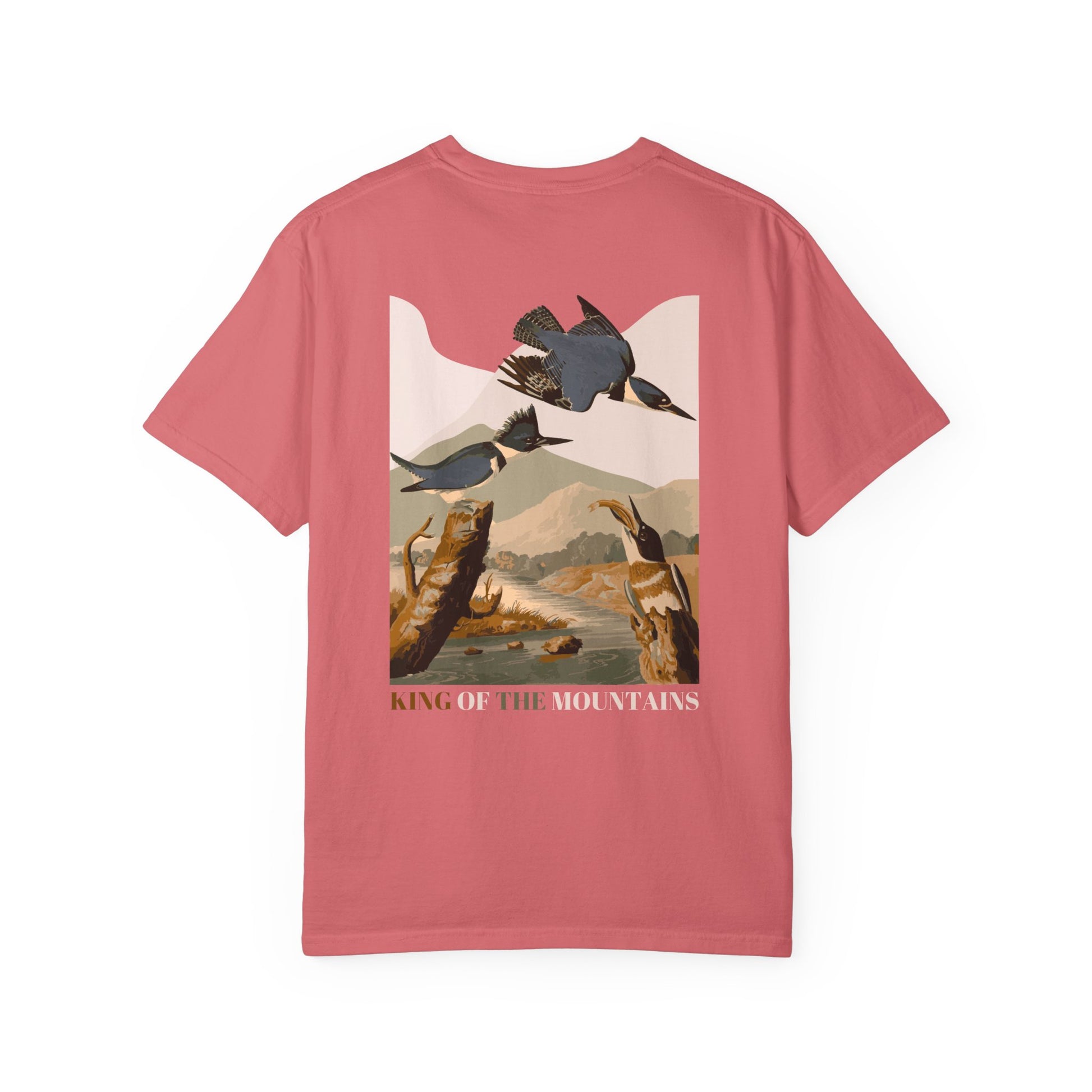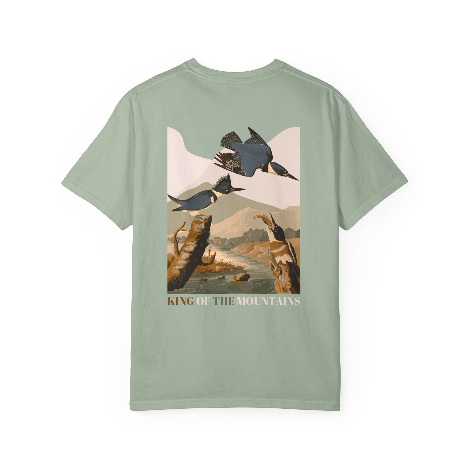 This shirt is inspired by our love for the Belted Kingfisher, a bird that has amazed us year after year by diving headfirst into our pond! Wear what you love and dive into the world of the Kingfisher. This wonderfully soft t-shirt is sure to connect you with other bird lovers.