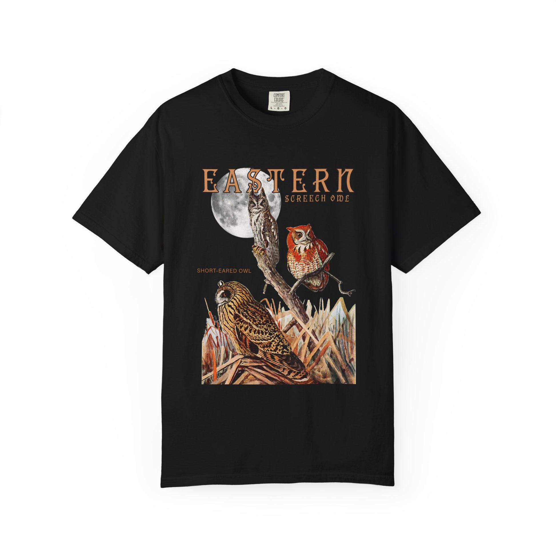 Our Eastern Screech Owl design features a vintage illustration, and mystical feel that unfolds the magic of the nocturnal world. These birds whisper through our woods and breathe mystery into the night-time woodlands.