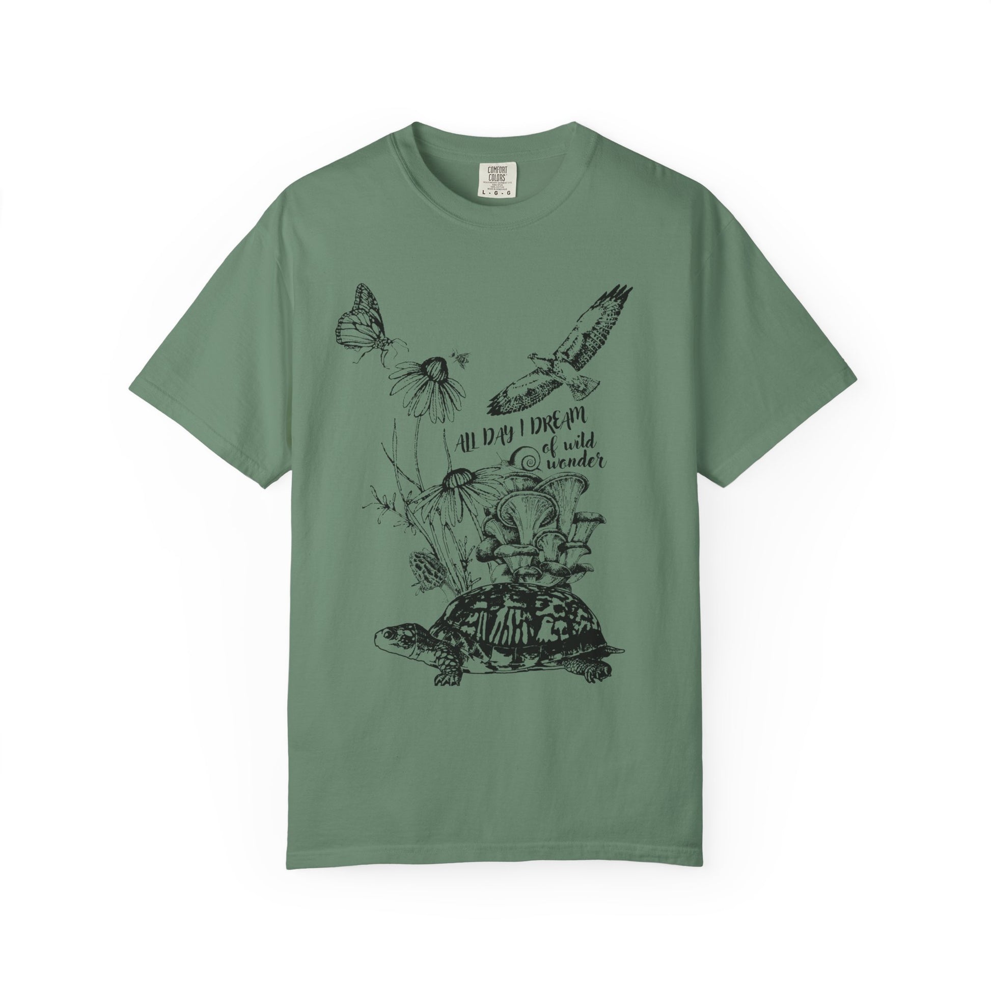 All of our friends are on this tee! Our Fauna and Flora t-shirt will connect you to the plants and animals in your local ecosystem, from the fungi on the ground to the hawks in the sky... spread the love! Celebrate the beauty of nature with threads that pay tribute to the vibrant ecosystems that sustain our local wild landscapes.